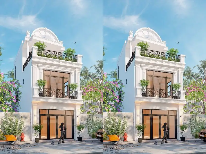 - 7 Mẫu nhà 2 tầng mặt tiền 6m 3 phòng ngủ phong cách Tân Cổ Điển đẹp ngất ngây
